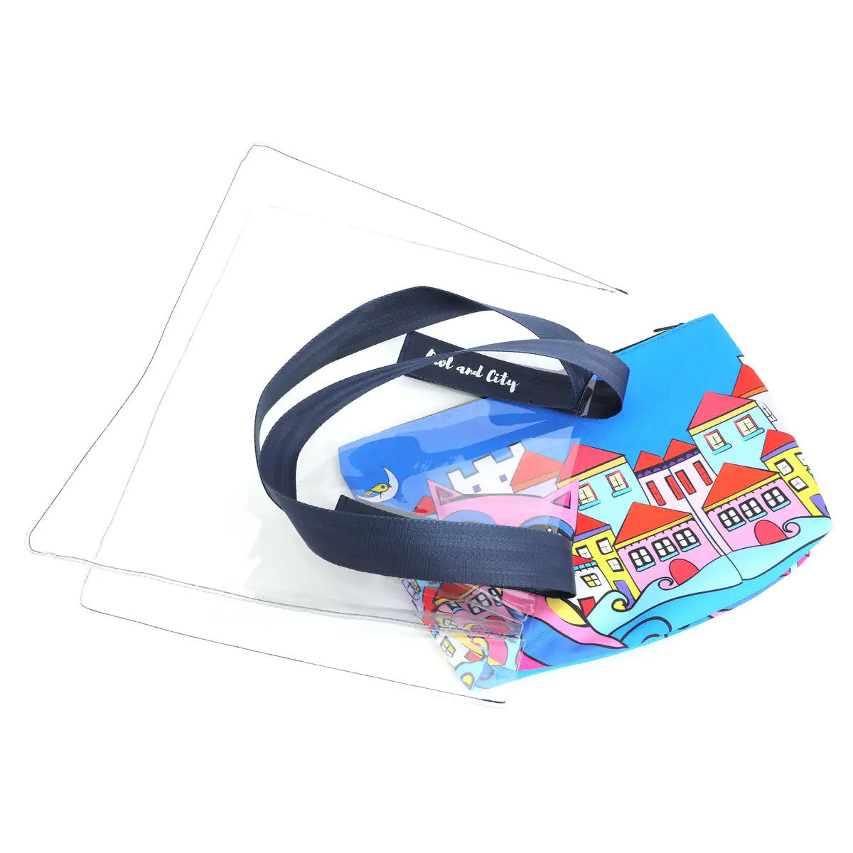 BIGGDESIGN CLEAR BAG: Biggdesign Owl&City beach tote is made from 100% waterproof thermoplastic polyurethane. It has desirable properties of abrasion-tear resistance and high impact strength so you can be sure of suffering no damage. You can easily clean with a damp cloth. This clear tote bag has also a removable clutch purse inside to keep your tablet, phone, jewelry separately and safer.
